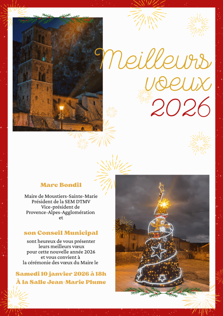 Cérémonie des vœux du Maire et du Conseil Municipal le samedi 10 janvier 2026 à 18h à la salle Plume. ...