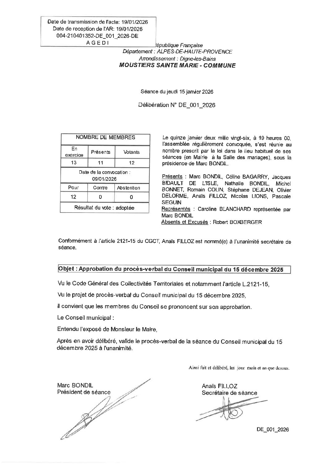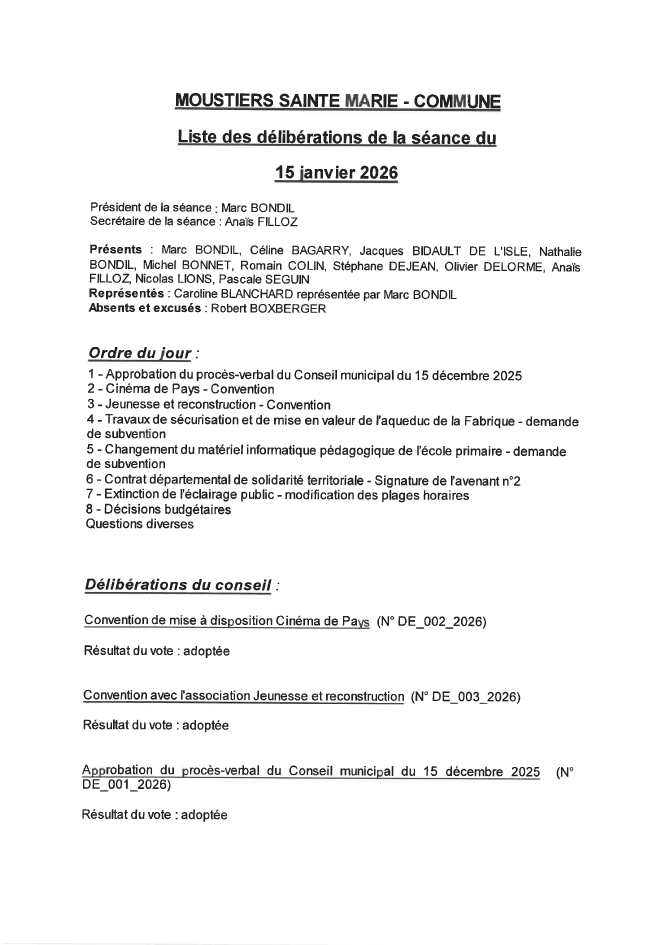 Compte-rendu du Conseil municipal du 15 janvier 2026. ...