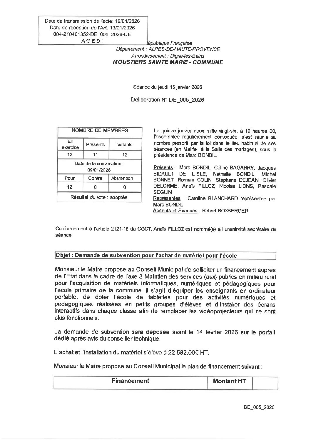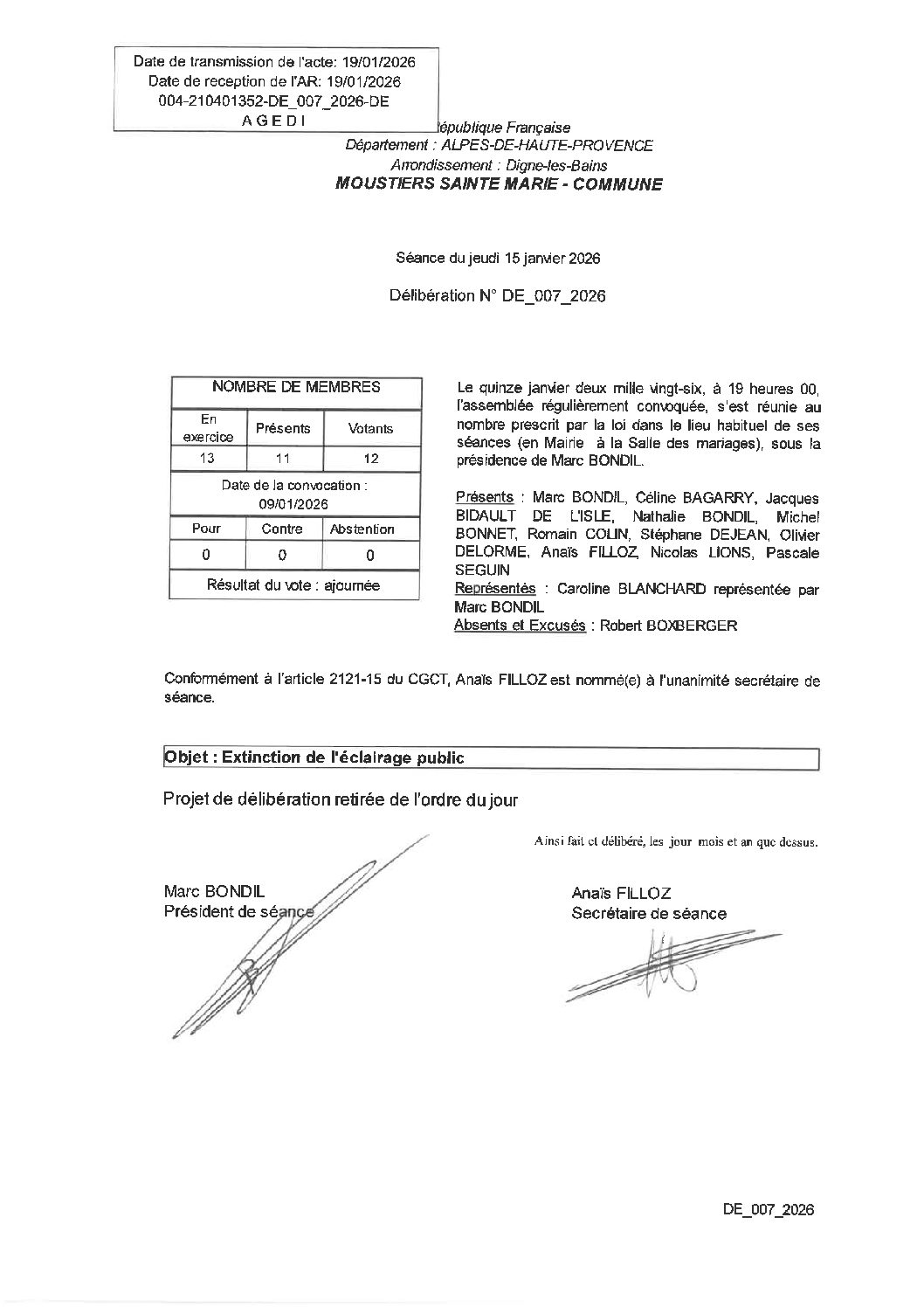 22 Jan CONSEIL MUNICIPAL DU 15/01/2026 : COMPTE-RENDU